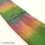 手絞り・手染め、そして地熱蒸気の効果を利用した染色です。それぞれグラデーションの配色や分量が異なる一点ものとしてお楽しみください。